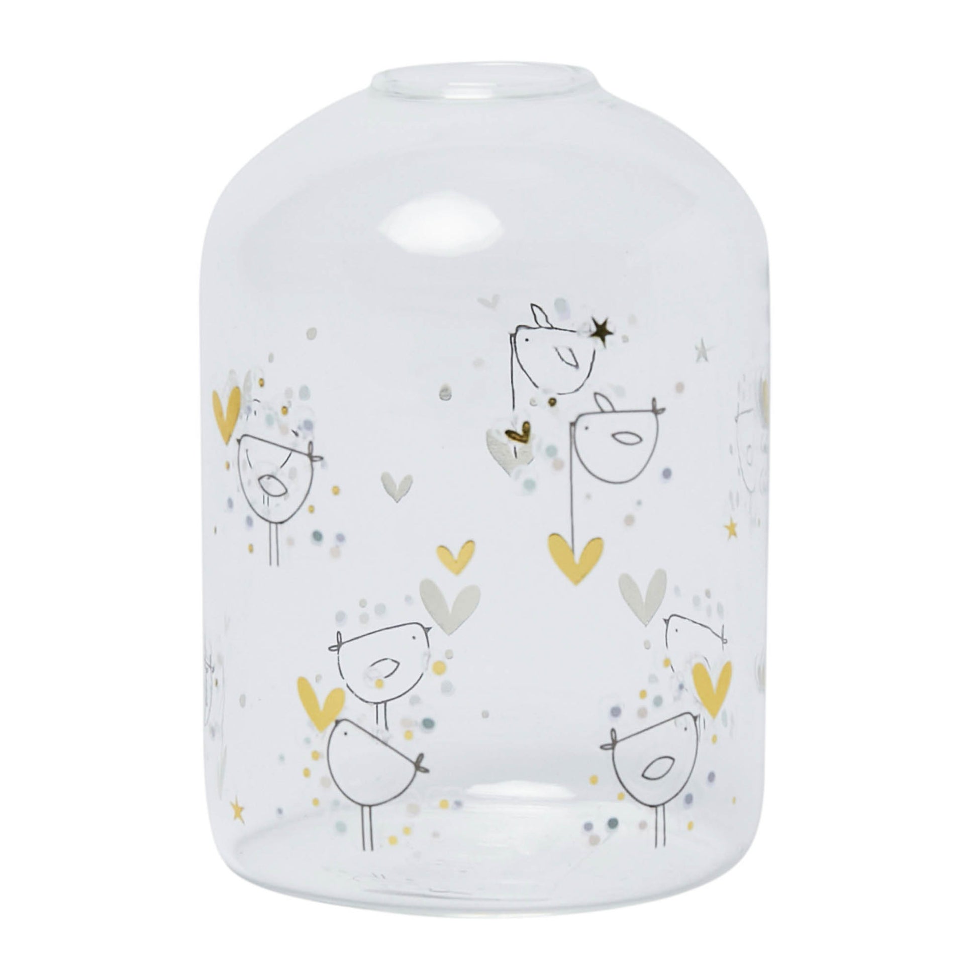 Birds & Hearts Glass Bud Vase