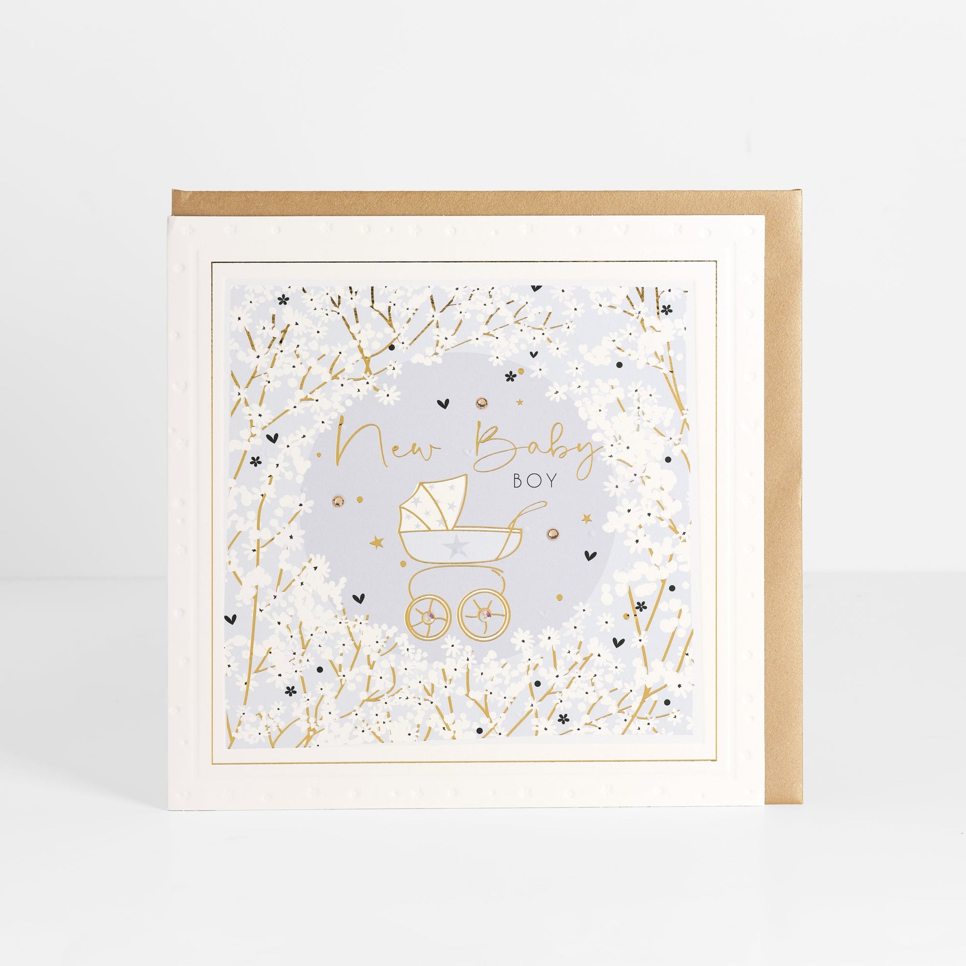 Beautiful finish of foil & emboss, delicately handfinished with Crystals
